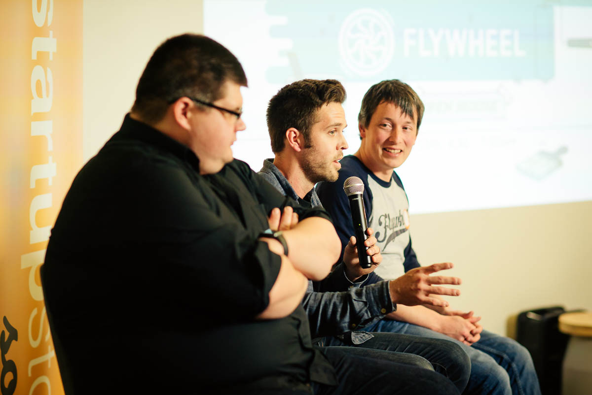 Last night’s guest speakers were Flywheel co-founders Dusty Davidson, Tony Noecker and Rick Knudtson. The latest episode of the SPN Startup Story Video Series featuring Flywheel was also premiered.