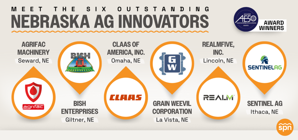 The awards are given by the American Society of Agricultural and Biological Engineers (ASABE). Nebraska companies represent almost a fifth of the total 33 winners this year, and include two startups. One or more may go on to win the Davidson Prize, the ASABE’s top innovation award.